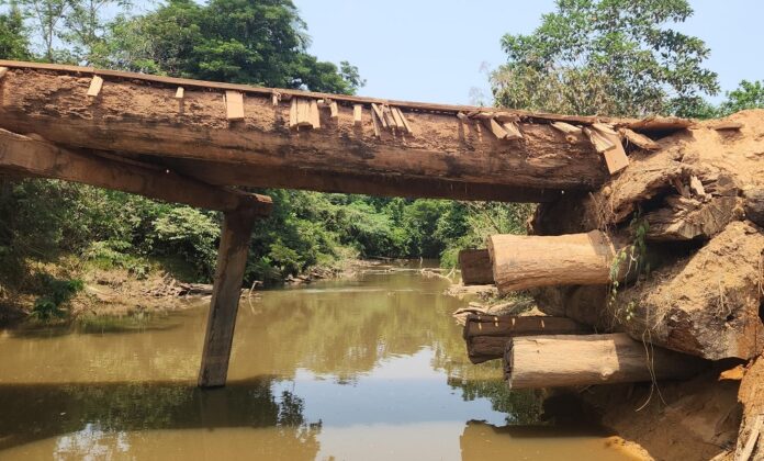 Uma das pontes com necessidade de manutenção é do KM 59, sobre o rio Viola. De ambos os lados, a ponte está sustentada por toras de madeira e, segundo o deputado, a situação representa um grave risco.