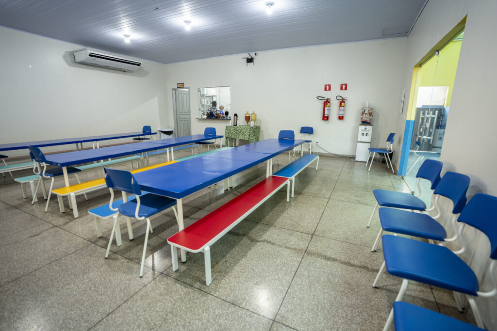 Refeitório com cozinha integrada e climatizadas oferecem mais confortos para os alunos