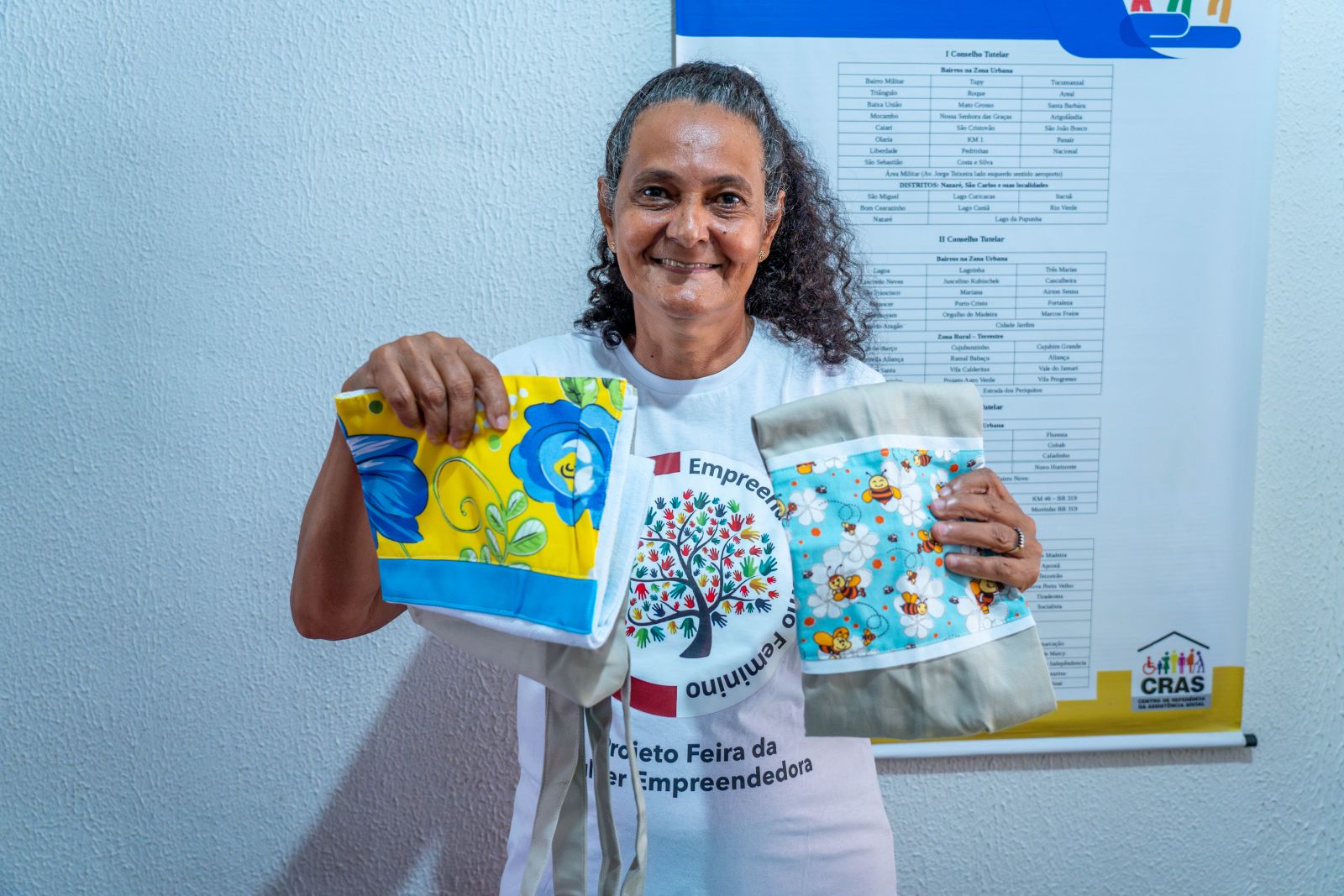 “Para mim, a realização desse curso foi algo maravilhoso que me proporcionou novos aprendizados, ocupando mais a mente. Além disso, com as confecções de bolsas de panos e de panos de pratos, poderei vender e aumentar ainda mais meu negócio. Foi incrível participar, pois não sabia nem mexer numa máquina de costura. E essa habilidade aprendi no curso. Meu propósito é continuar buscando aperfeiçoamento. Agradeço a todos da Prefeitura por essa oportunidade”, disse Elizabete.