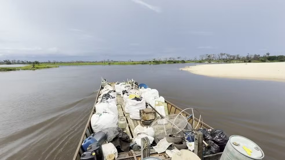 Pescadores, ribeirinhos e voluntários participaram de uma expedição para remover o lixo acumulado ao longo do rio Guaporé, em Pimenteiras do Oeste (RO). A ação tem como objetivo reflorestar cerca de 40 quilômetros de vegetação que foi destruída pelos incêndios.