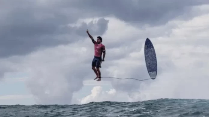 Na impressionante imagem, o surfista parece flutuar após concluir uma manobra em uma das melhores ondas surfadas pelo atleta durante a competição. A fotografia estampou várias capas de jornais no mundo e, de acordo com comentaristas, a imagem ilustra a essência dos Jogos Olímpicos.