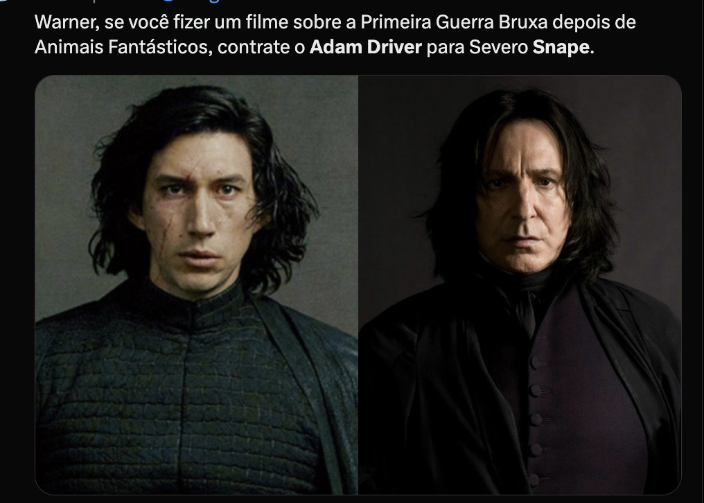 Em meio à controvérsia, o nome de Adam Driver ganhou força como a escolha preferida dos fãs para interpretar Snape. Conhecido por papéis intensos em Star Wars (como Kylo Ren) e Marriage Story, Driver é elogiado por sua capacidade de encarnar personagens emocionalmente complexos, com uma presença física que muitos consideram próxima da descrição de Snape. “Adam Driver tem o olhar penetrante, a postura melancólica e a intensidade que Snape exige. Ele seria perfeito”, escreveu um fã no X.
