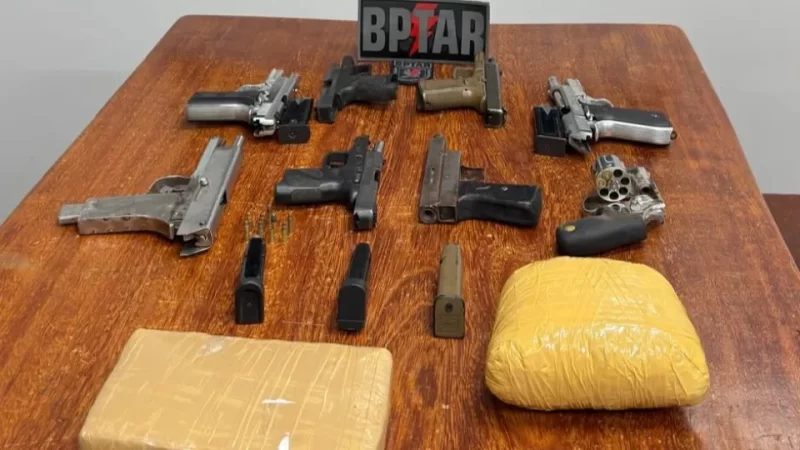 Após o tiroteio, os policiais realizaram uma varredura no imóvel, onde foram apreendidas oito armas de fogo de calibres variados, grande quantidade de munições, dois tabletes de maconha e R$ 319 em espécie. Todo o material foi encaminhado à Central de Polícia para os procedimentos cabíveis.