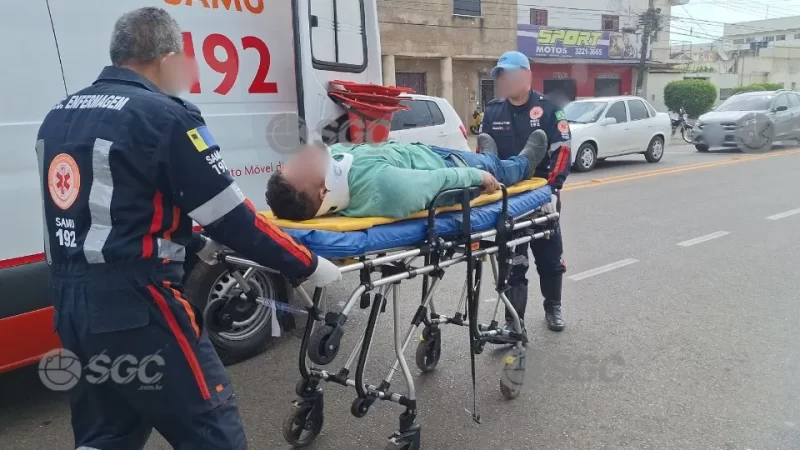 Com o impacto, o motociclista que trafegava pela via preferencial sofreu ferimentos e foi socorrido até a Policlínica Ana Adelaide. Policiais militares foram acionados para registrar a ocorrência e controlar o tráfego no local.