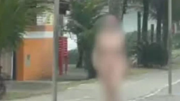 Imagens que circulam nas redes sociais mostram a mulher nua em uma rua próximo a orla. Ela foi abordada por guardas municipais e confessou que havia assassinado o pai, identificado como Marcos Ferreira Linhares, no apartamento onde eles moravam.
