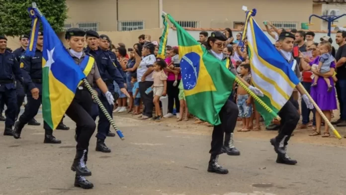 Ainda de acordo com a organização, o desfile terá início às 16h, na Avenida João Batista com o palco das autoridades a ser instalado em frente à sede da prefeitura. Estarão desfilando as seguintes unidades de ensino: Creche ‘Pingo de Gente’, Escola Primeiros Traços, Florestan Fernandes, Rio São Francisco, Junqueira Freire, 15 de Novembro, Professor Luiz Capilla, Paulo Freire, Carlos Drumond Andrade, Emburana e a Escola Dona Benta. Também irão desfilar a Universidade Federal de Rondônia (UNIR), Polícia Mirim e Polícia Militar.