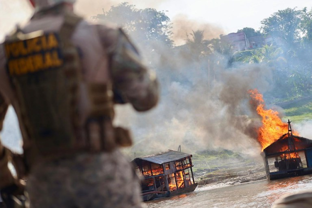 Equipes integradas por policiais federais, policiais rodoviários federais e agentes da Força Nacional de Segurança Pública cumpriram, na manhã desta segunda-feira (15/9), ordem judicial expedida pela Justiça Federal do Amazonas para a destruição de dragas utilizadas no garimpo ilegal no Rio Madeira.
