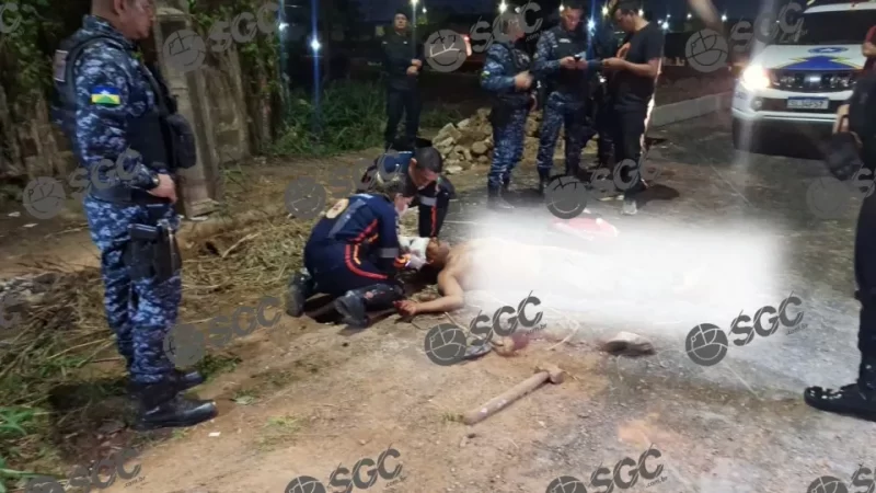 Vítima invadiu propriedade e agrediu portão com marreta, segundo relatos; agressor utilizou ferramentas para golpeá-la na cabeça e fugiu do local.