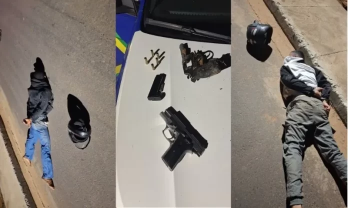 A ação dos criminosos foi rápida. Após efetuarem os disparos, a dupla fugiu em uma motocicleta. No entanto, a Polícia Militar, que realizava patrulhamento pelo bairro Jardim Aeroporto II, foi informada sobre o incidente e iniciou uma busca pelos suspeitos. Nas proximidades da ponte do Jardim Aeroporto, os policiais avistaram dois homens com as características repassadas e iniciaram a perseguição.