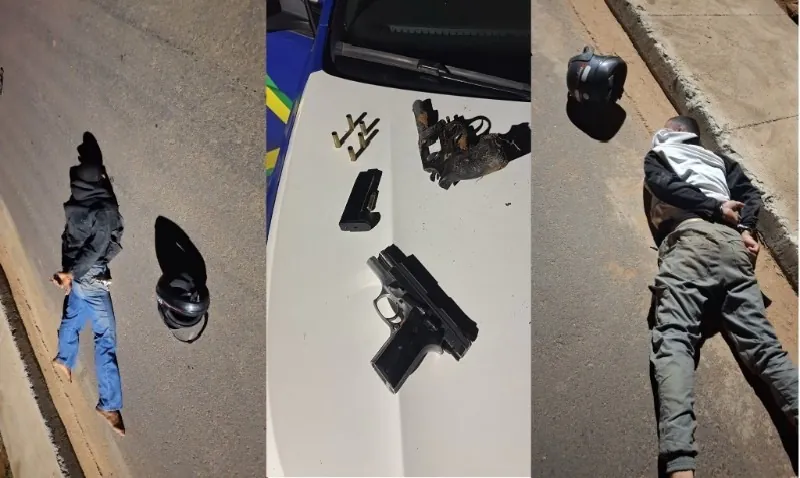 Os dois homens foram encaminhados à Delegacia Civil, onde serão autuados, e os materiais apreendidos, incluindo as armas e a motocicleta, foram entregues à autoridade policial.