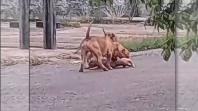 No local, os policiais entraram em contato com o solicitante, proprietário de um cão de pequeno porte, que relatou ter aberto o portão de sua residência quando o animal saiu para a rua. Nesse momento, dois cachorros de grande porte, da raça Pitbull e de cor marrom, que estavam soltos, atacaram violentamente o cão menor, mordendo-o diversas vezes.