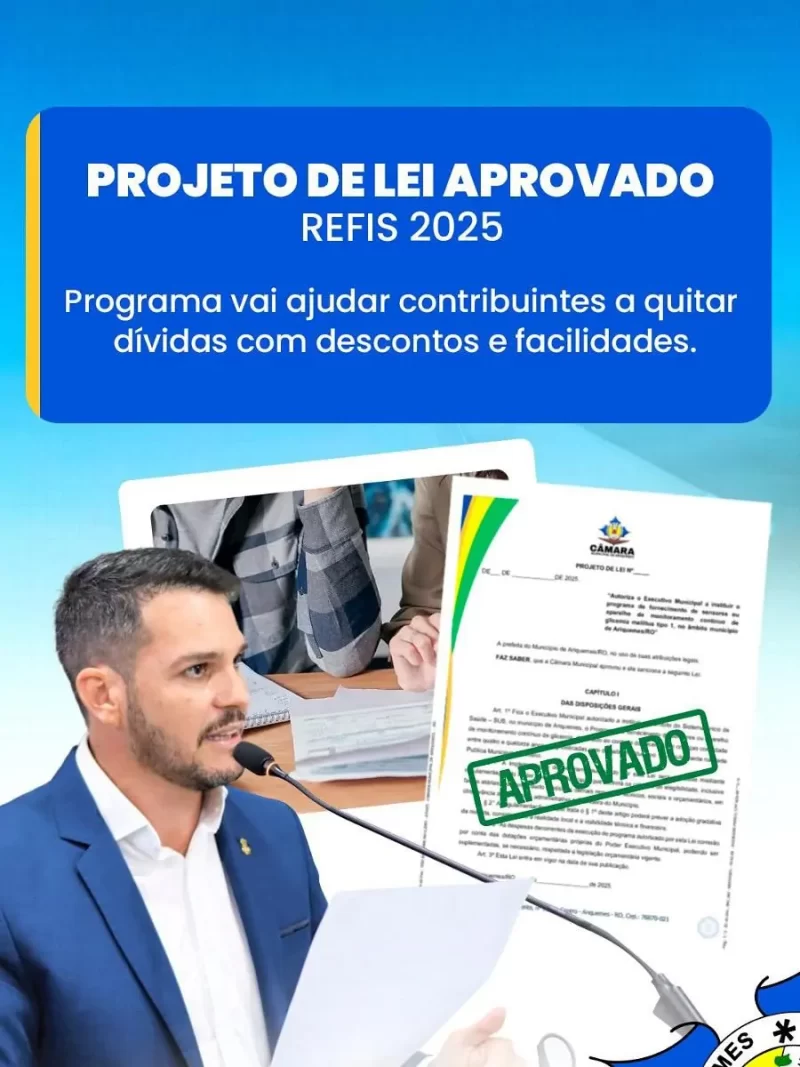 O projeto foi apresentado pelo vereador Renato Padeiro, que destacou a importância da medida para ajudar contribuintes a regularizarem seus débitos e, ao mesmo tempo, fortalecer as finanças municipais. Segundo ele, o REFIS 2025 é uma iniciativa que “traz justiça fiscal e oferece aos cidadãos uma nova oportunidade para colocar suas contas em dia com o município”.
