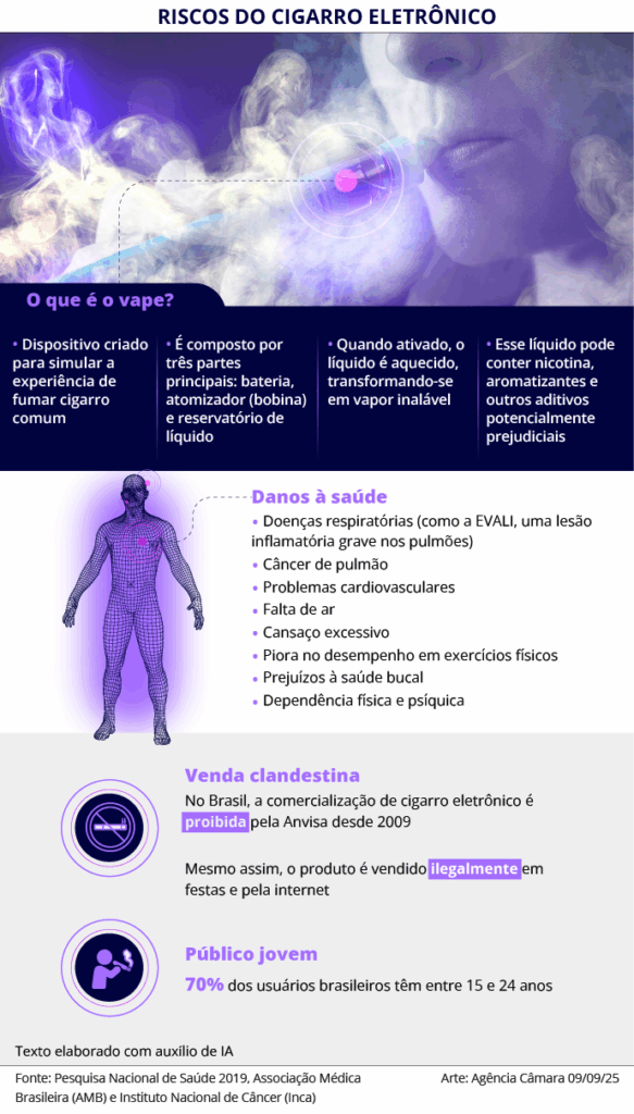A deputada Gisela Simona (União-MT) também é autora de um projeto que torna crime produzir, fazer propaganda e comercializar cigarros eletrônicos (PL 4888/23). Por essa proposta, a pena seria de 2 a 4 anos de reclusão, a ser aplicada em dobro quando a propaganda for dirigida a menor de 18 anos.