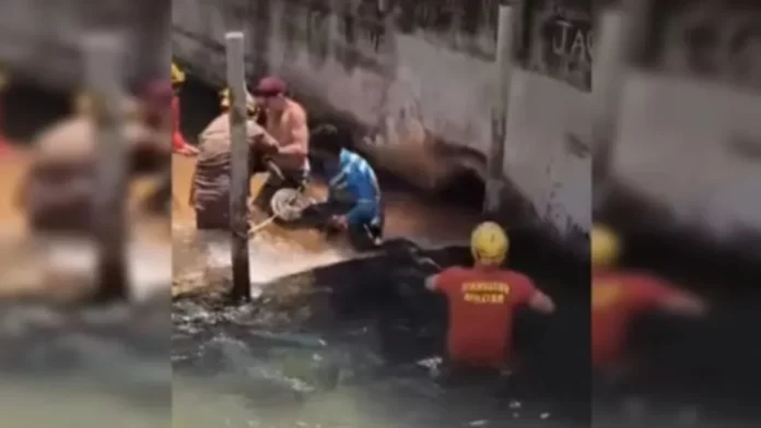 Segundo o CBMGO, a sucuri resgatada mede cerca de 5 metros. Para retirá-la do local foi necessário a ajuda de populares.