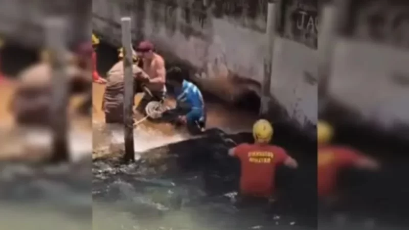O Corpo de Bombeiros de Goiás (CBMGO) resgatou um sucuri na parte de trás de um hotel localizado em Rio Quente (GO), cidade próxima a Caldas Novas (GO). O animal silvestre foi visto no local por volta das 11h deste domingo (12/10) e populares acionaram a corporação.