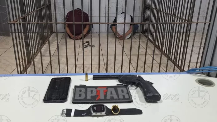 Dois homens foram presos na noite de domingo (19) após uma ação do Batalhão de Policiamento Tático de Ação e Reação ao Crime Organizado (BPTAR) na zona Leste de Porto Velho (RO). A dupla foi flagrada com uma motocicleta roubada e uma arma de fabricação caseira. A prisão ocorreu depois que o Centro Integrado de Operações Policiais (CIOP) informou que os suspeitos trafegavam pela Avenida Amazonas em uma moto roubada.