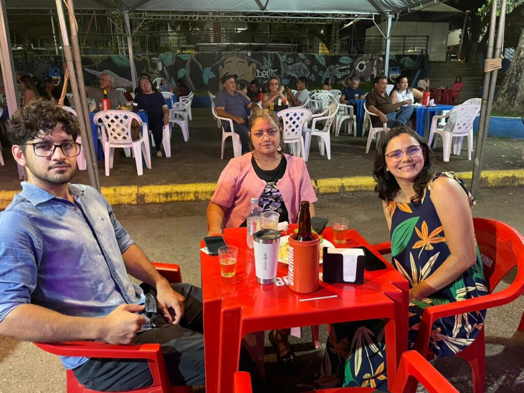 Os amigos Tainara Barros e Eduardo Maia, ambos recepcionistas, aproveitaram a noite cultural. “Adoro MPB e fiquei encantada com o repertório. Tudo foi muito bem organizado”, afirmou Tainara. “Esses eventos fortalecem o sentimento de pertencimento à cidade e aproximam o povo da cultura local”, completou Eduardo.