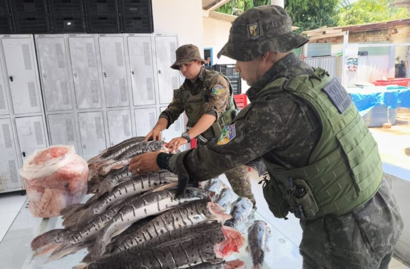 Durante fiscalização no âmbito da Operação Protetor dos Biomas, do Ministério da Justiça e Segurança Pública (MJSP), o Batalhão de Polícia Ambiental apreendeu aproximadamente 205,65 kg de pescado irregular transportado em uma caminhonete na BR-364, em Porto Velho. A ação foi executada pela equipe comandada pelo tenente Dias, com apoio do sargento Silva Filho, cabo Lacerda e cabo Fernando.