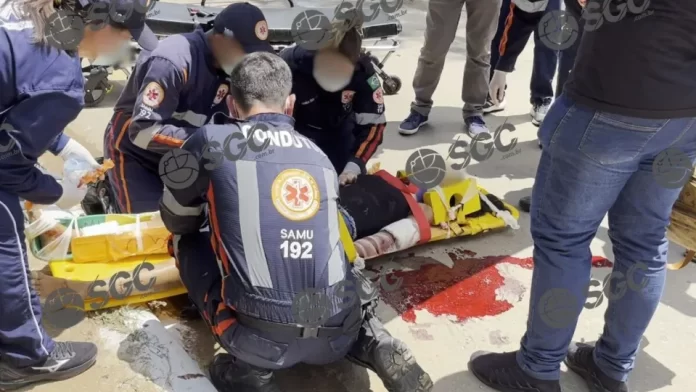 Uma equipe do Samu prestou socorro à mulher, que foi levada para um hospital para receber tratamento intensivo