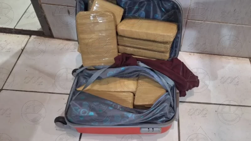 Ao localizar a bagagem, os agentes encontraram diversos tabletes de skunk, totalizando aproximadamente 14 quilos da droga — uma variação potente da maconha, conhecida como “supermaconha”.