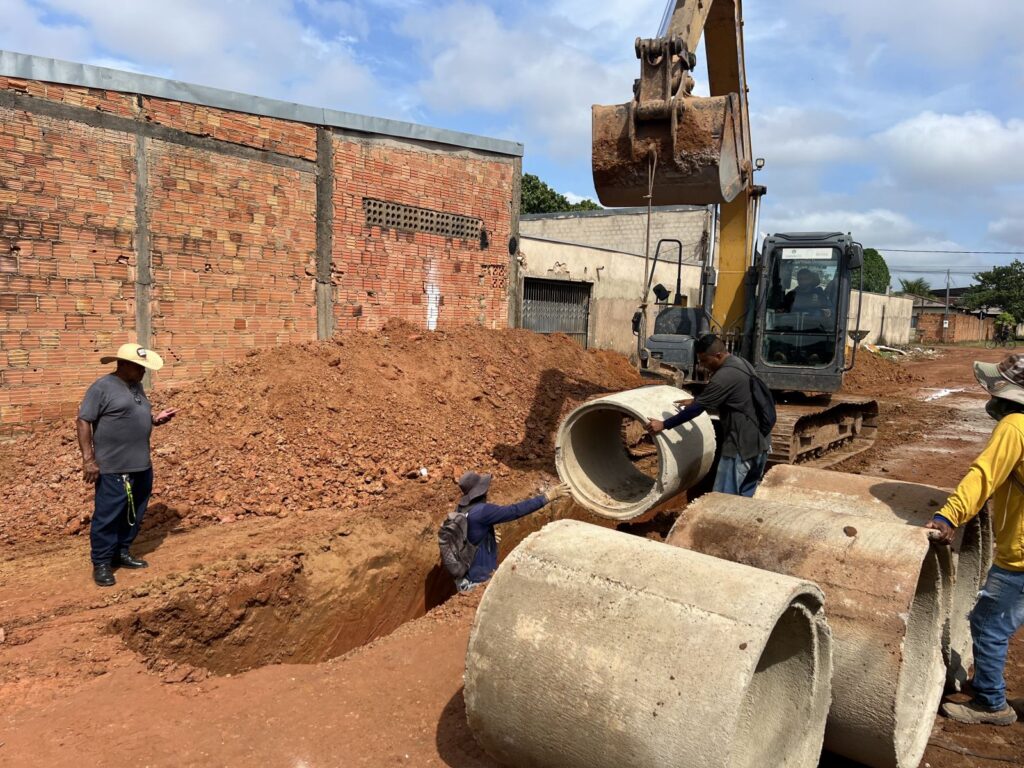 Os serviços envolvem desde a escavação e preparação do solo até a colocação das manilhas e construção das estruturas complementares de drenagem.