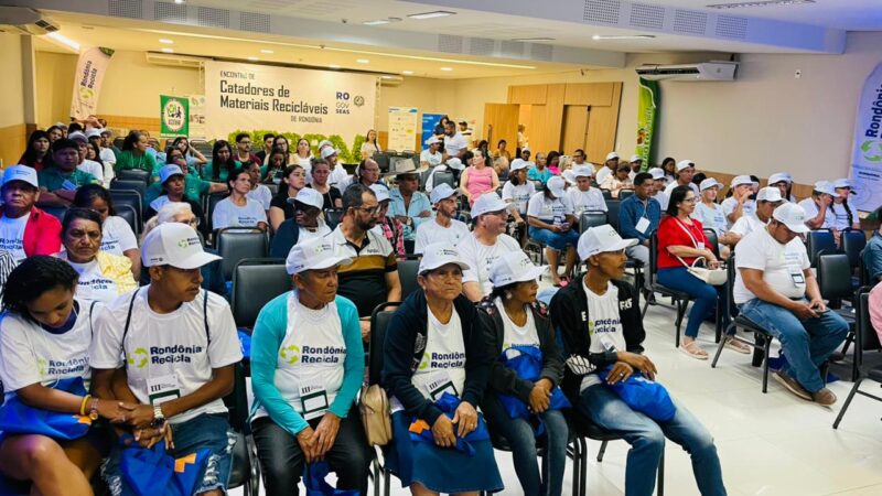 Promover a valorização, o fortalecimento e a inclusão produtiva. Com esta proposta, o governo de Rondônia abriu no sábado (6), por meio da Secretaria de Estado da Mulher da Família da Assistência e do Desenvolvimento Social (Seas), o 3º Encontro Estadual de Catadores de Materiais Recicláveis. O evento que segue até esta segunda-feira (8), conta com palestras, rodas de conversa, grupos de trabalho e atividades que visam ampliar a geração de renda, qualificar a atuação das cooperativas e associações, difundir práticas seguras de trabalho e consolidar propostas para o desenvolvimento da política pública de reciclagem inclusiva em Rondônia.