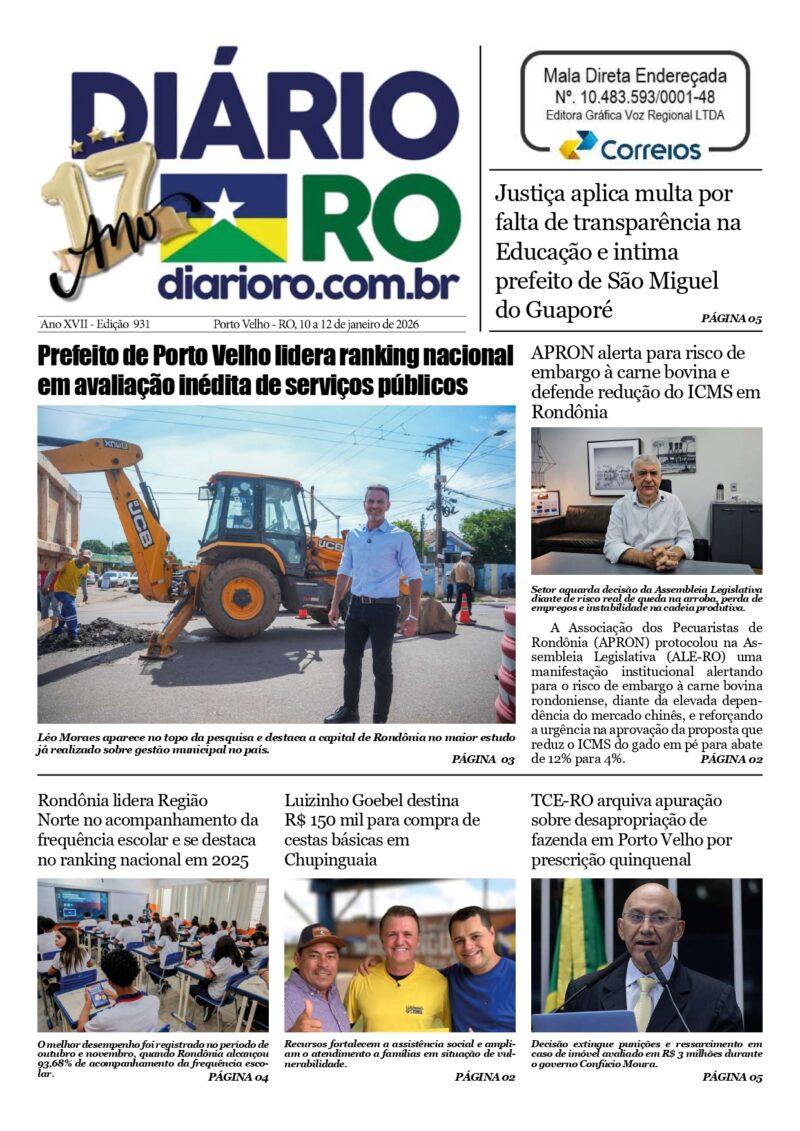 InícioEdiçõesEDIÇÃO 931 - 10 A 12/01/2025 Edições EDIÇÃO 931 – 10 A 12/01/2025 Janeiro 11, 2026 FacebookTwitterPinterestWhatsApp EDIÇÃO 931Descarregar Compartilhado FacebookTwitterPinterestWhatsApp MAIS ACESSADAS “Nunca mais vou roubar”: bandido se ‘converte’ após conhecer a ‘mansidão’ do pitbull Mário; veja vídeo Abril 24, 2025 Hoje é 13 de junho, dia das amantes Junho 13, 2024 Tudo filmado: ‘amostradinhos do grau’ causam acidente de moto e matam trabalhador – veja vídeo Agosto 1, 2024 Vídeo: Flagrante de traição: Marido pega traição da esposa após sair para assistir jogo Julho 9, 2024 Carregar mais