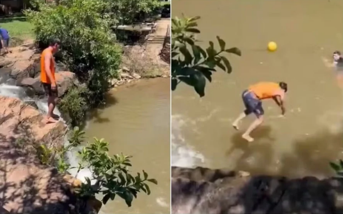 O jovem foi orientado a não pular da cachoeira, mas decidiu mergulhar mesmo assim