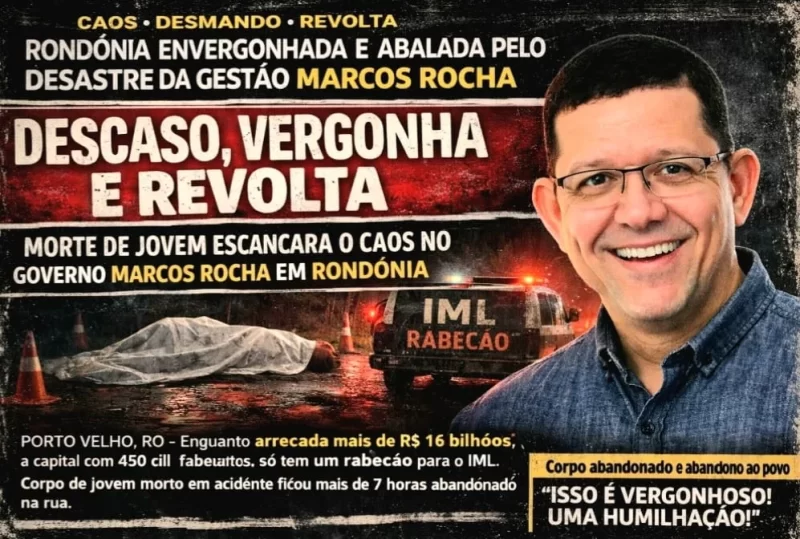 Porto Velho, RO – A morte de um jovem em um acidente de trânsito e o abandono do corpo por mais de sete horas nas ruas de Porto Velho escancararam o retrato mais cruel do descaso do governo Marcos Rocha com a população de Rondônia. O caso, que já repercute em todo o estado, tornou-se símbolo da falência do sistema público e da indiferença oficial diante da vida humana.