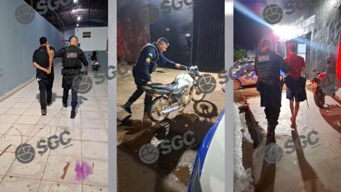 Na madrugada deste domingo (25), policiais militares do CPA visualizaram uma motocicleta Honda CG 125 Cargo, de cor branca, trafegando com irregularidades na Avenida Carlos Gomes, em Porto Velho. O veículo, ocupado por dois indivíduos sem capacete, estava com farol desligado, carecia de placa, retrovisores e tinha a rabeta cortada, o que motivou a aproximação da guarnição.