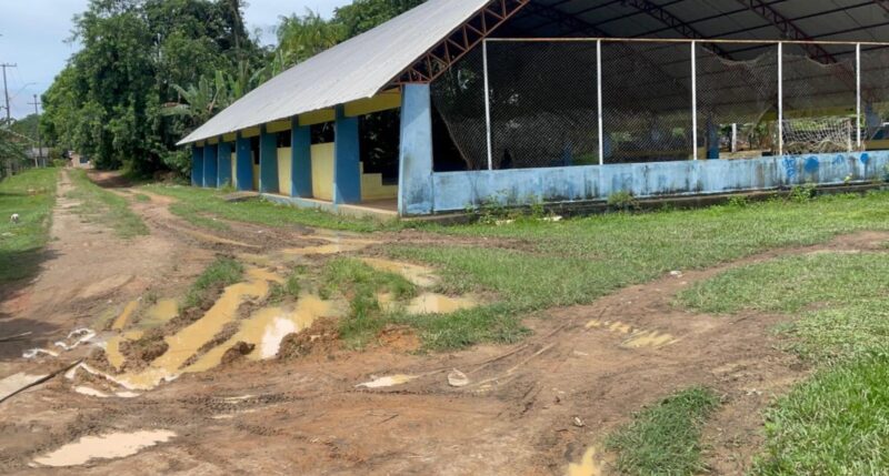Quadra poliesportiva da unidade escolar encontra-se em condições inadequadas de uso (Foto: Assessoria Parlamentar)