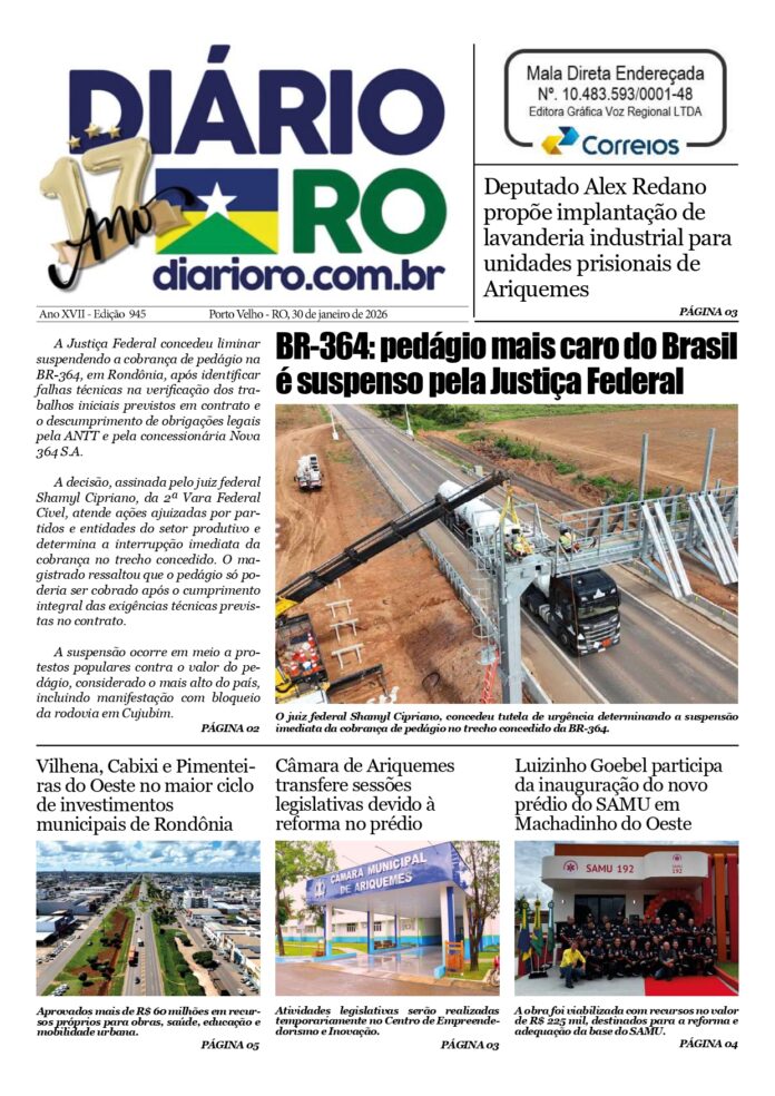 InícioEdiçõesEDIÇÃO 945 - 30/01/2026 Edições EDIÇÃO 945 – 30/01/2026 Janeiro 29, 2026 FacebookTwitterPinterestWhatsApp EDIÇÃO 945Descarregar Compartilhado FacebookTwitterPinterestWhatsApp MAIS ACESSADAS “Nunca mais vou roubar”: bandido se ‘converte’ após conhecer a ‘mansidão’ do pitbull Mário; veja vídeo Abril 24, 2025 Hoje é 13 de junho, dia das amantes Junho 13, 2024 Tudo filmado: ‘amostradinhos do grau’ causam acidente de moto e matam trabalhador – veja vídeo Agosto 1, 2024 Vídeo: Flagrante de traição: Marido pega traição da esposa após sair para assistir jogo Julho 9, 2024 Carregar mais