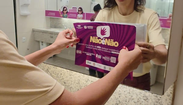 As promotoras de Justiça Tânia Garcia, coordenadora do Navit, e Maira Coura, da Promotoria de Violência Doméstica, o Subprocurador-Geral de Justiça Administrativo, Marcelo Lima de Oliveira, e a juíza Márcia Regina Gomes Serafim, do 2º Juizado de Violência Doméstica do TJRO, juntamente com integrantes da segurança pública e rede de proteção, aplicaram adesivos nos banheiros dos restaurantes e nas áreas comuns. Esses adesivos levam mensagens simples sobre respeito e explicam que “Não é Não”, e que quando uma mulher diz NÃO, qualquer insistência é desrespeito e qualquer passo além é violência.