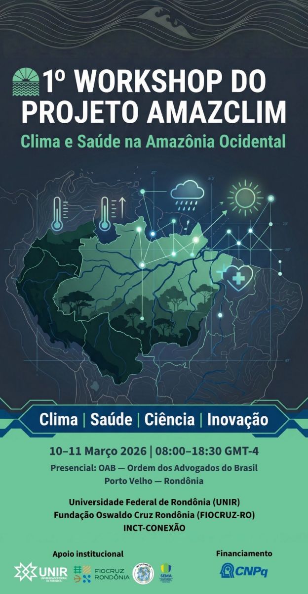 Nos dias 10 e 11 de março, Porto Velho sediará o 1º Workshop Amazclim – Clima e Saúde Ocidental, realizado de forma presencial no auditório da Ordem dos Advogados do Brasil Seccional Rondônia (OAB-RO).