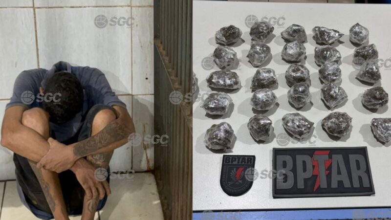 A Polícia Militar prendeu nesta quarta-feira (25), um homem de 27 anos suspeito de tráfico de drogas em uma vila de apartamentos na Rua Maranhão, bairro Caladinho, zona Sul de Porto Velho (RO).