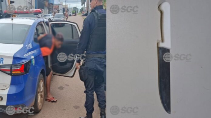 Durante a abordagem, os militares perceberam que o homem estava com uma faca na cintura e tentava escondê-la da guarnição. A arma branca foi retirada imediatamente pelos policiais.