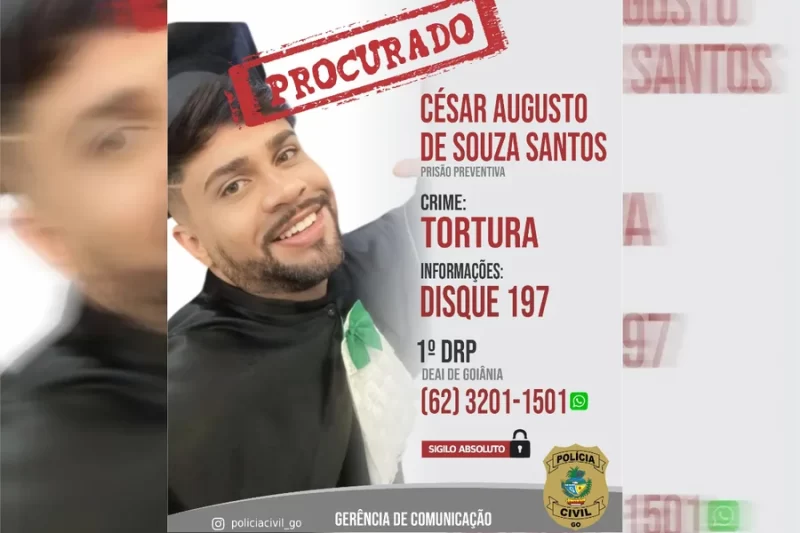 O técnico de enfermagem César Augusto de Souza Santos, de 35 anos, é procurado pela Polícia Civil de Goiás (PCGO) por suspeita de agredir e torturar um homem de 86 anos dentro de casa, no Setor Leste Universitário, em Goiânia. A Justiça expediu um mandado de prisão preventiva contra o cuidador de idosos.