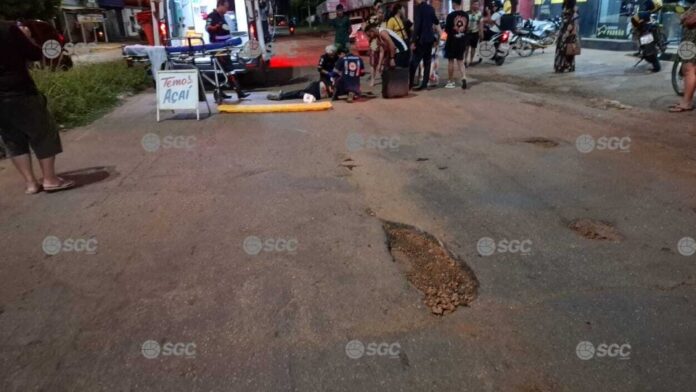 De acordo com informações apuradas no local, o trabalhador seguia pela Avenida Rio de Janeiro no sentido bairro quando atingiu um buraco aberto no meio da via. Com o impacto, perdeu o controle da motocicleta e caiu violentamente ao chão.