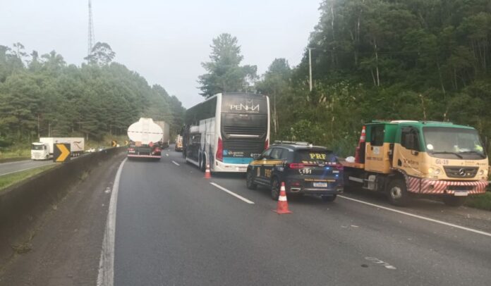 Equipes da concessionária responsável pela rodovia e da PRF seguem atuando no local para atendimento da ocorrência e organização do tráfego.