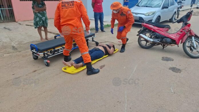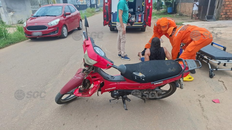 Um acidente de trânsito foi registrado na manhã desta terça-feira na Rua Algodoeiro, no bairro Eletronorte, na Zona Sul de Porto Velho. Uma mulher ficou ferida após se jogar de uma motocicleta com a filha para evitar uma batida.