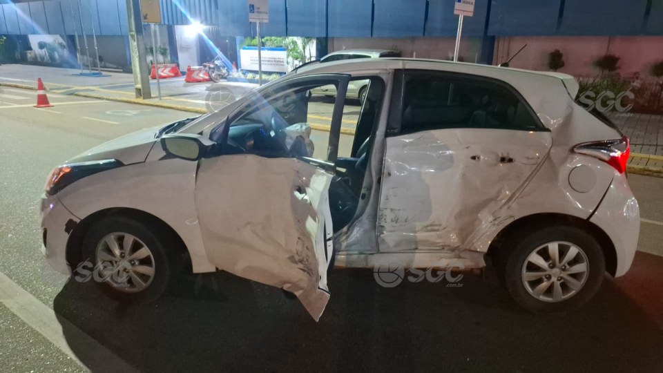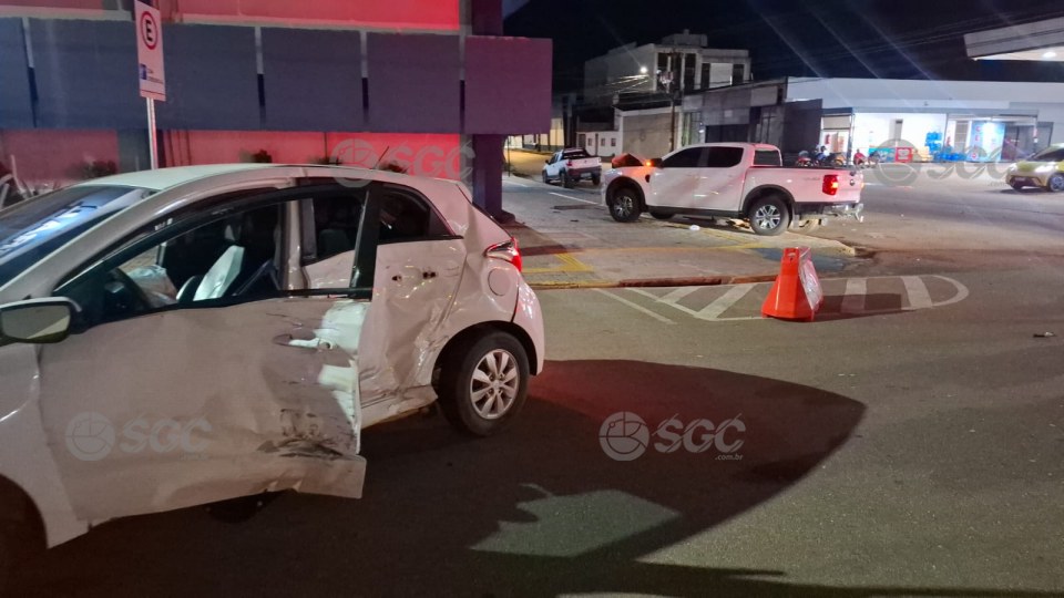 Com o impacto, a motorista do HB20 sofreu escoriações leves e dispensou atendimento médico. O condutor da caminhonete não se feriu.