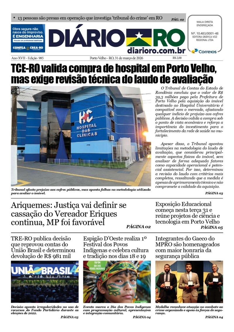 InícioEdiçõesEDIÇÃO 985- 31/03/2026 Edições EDIÇÃO 985- 31/03/2026 Março 30, 2026 FacebookTwitterPinterestWhatsApp EDIÇÃO 985Descarregar Compartilhado FacebookTwitterPinterestWhatsApp MAIS ACESSADAS “Nunca mais vou roubar”: bandido se ‘converte’ após conhecer a ‘mansidão’ do pitbull Mário; veja vídeo Abril 24, 2025 Hoje é 13 de junho, dia das amantes Junho 13, 2024 Tudo filmado: ‘amostradinhos do grau’ causam acidente de moto e matam trabalhador – veja vídeo Agosto 1, 2024 Vídeo: Flagrante de traição: Marido pega traição da esposa após sair para assistir jogo Julho 9, 2024 Carregar mais