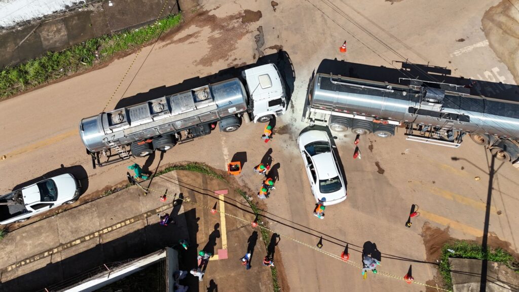 “Durante o exercício, são criados cenários realistas, incluindo tombamentos e vazamentos de combustíveis e produtos químicos. Essas situações exigem respostas rápidas, como o isolamento da área afetada, a contenção do produto perigoso, o combate a incêndios e a triagem e o atendimento médico às vítimas”.