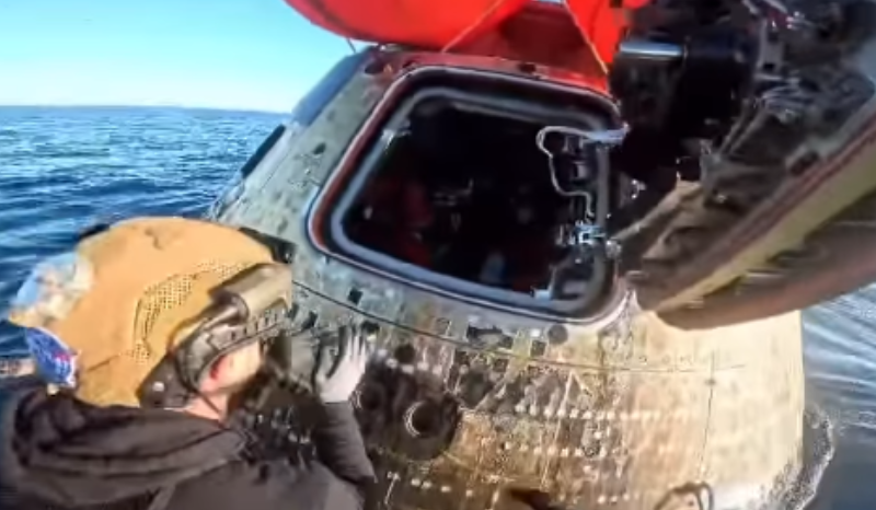 EUA – Um vídeo compartilhado nas redes sociais do astronauta Reid Wiseman (@astro_reid) mostra o momento em que ele e os outros astronautas Victor Glover, 49, Christina Koch, 47, e Jeremy Hansen, 50, da missão espacial da Nasa Artemis II, saem da nave Orion, quando a cápsula com paraquedas aterrissou, a cerca de 3,1 mil quilômetros da costa de San Diego, na Califórnia, nos EUA, após a missão à Lua.