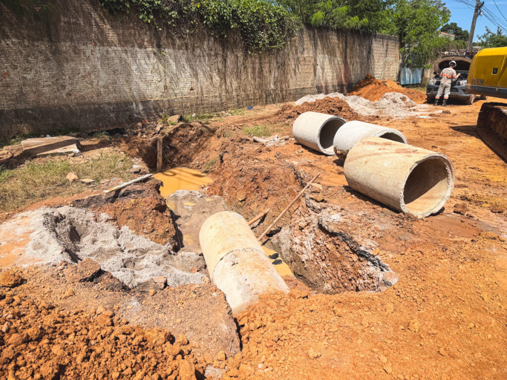 Já na zona Norte, no bairro Industrial, uma obra de maior porte está em andamento. O objetivo é solucionar de forma definitiva um problema histórico de alagação que atinge centenas de famílias da região.