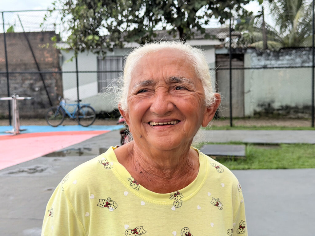 E, aos 82 anos, Maria Madalena encontrou na praça um lugar de convivência e bem-estar.