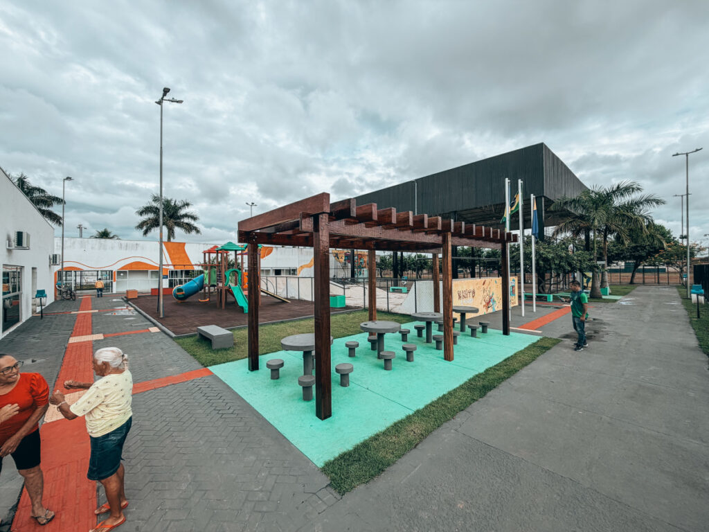 Mais do que as melhorias estruturais, o que chama atenção é a nova aparência da praça. O espaço está mais colorido, iluminado e convidativo, com áreas organizadas e ambientes que estimulam a permanência das pessoas. O que antes era pouco utilizado hoje se transforma em um cenário de convivência, com movimento, crianças brincando e famílias ocupando novamente o local.