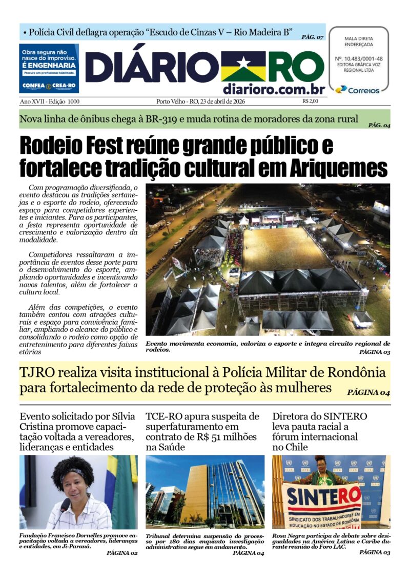 InícioEdiçõesEDIÇÃO 1000 - 23/04/2026 Edições EDIÇÃO 1000 – 23/04/2026 Abril 22, 2026 FacebookTwitterPinterestWhatsApp EDIÇÃO 1000Descarregar Compartilhado FacebookTwitterPinterestWhatsApp MAIS ACESSADAS “Nunca mais vou roubar”: bandido se ‘converte’ após conhecer a ‘mansidão’ do pitbull Mário; veja vídeo Abril 24, 2025 Hoje é 13 de junho, dia das amantes Junho 13, 2024 Tudo filmado: ‘amostradinhos do grau’ causam acidente de moto e matam trabalhador – veja vídeo Agosto 1, 2024 Vídeo: Flagrante de traição: Marido pega traição da esposa após sair para assistir jogo Julho 9, 2024 Carregar mais