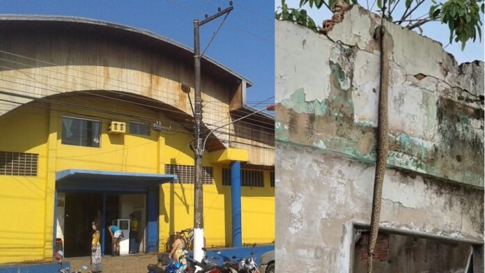 Uma cobra sucuri foi encontrada morta na manhã desta quarta-feira (22) em plena área central de Porto Velho. O animal estava pendurado na parede de um imóvel comercial abandonado, próximo ao Mercado Central da capital.