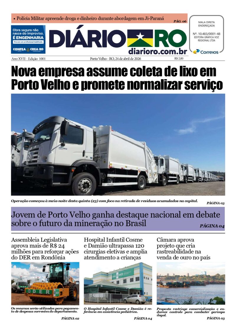 InícioEdiçõesEDIÇÃO 1001 - 24/04/2026 Edições EDIÇÃO 1001 – 24/04/2026 Abril 23, 2026 FacebookTwitterPinterestWhatsApp EDIÇÃO 1001Descarregar Compartilhado FacebookTwitterPinterestWhatsApp MAIS ACESSADAS “Nunca mais vou roubar”: bandido se ‘converte’ após conhecer a ‘mansidão’ do pitbull Mário; veja vídeo Abril 24, 2025 Hoje é 13 de junho, dia das amantes Junho 13, 2024 Tudo filmado: ‘amostradinhos do grau’ causam acidente de moto e matam trabalhador – veja vídeo Agosto 1, 2024 Vídeo: Flagrante de traição: Marido pega traição da esposa após sair para assistir jogo Julho 9, 2024 Carregar mais